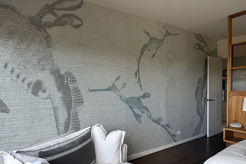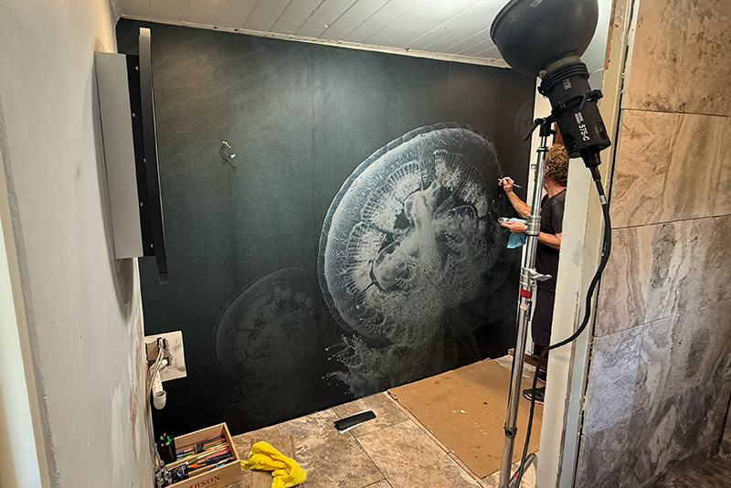 This installed large-scale surface work explores suspended marine forms within an ambiguous spatial field. Layered transparency and drifting structures suggest an evolving ecosystem shaped by adaptation and regeneration. The work demonstrates how atmospheric environmental imagery translates effectively into a finished architectural application, maintaining clarity and depth across a large-format surface.