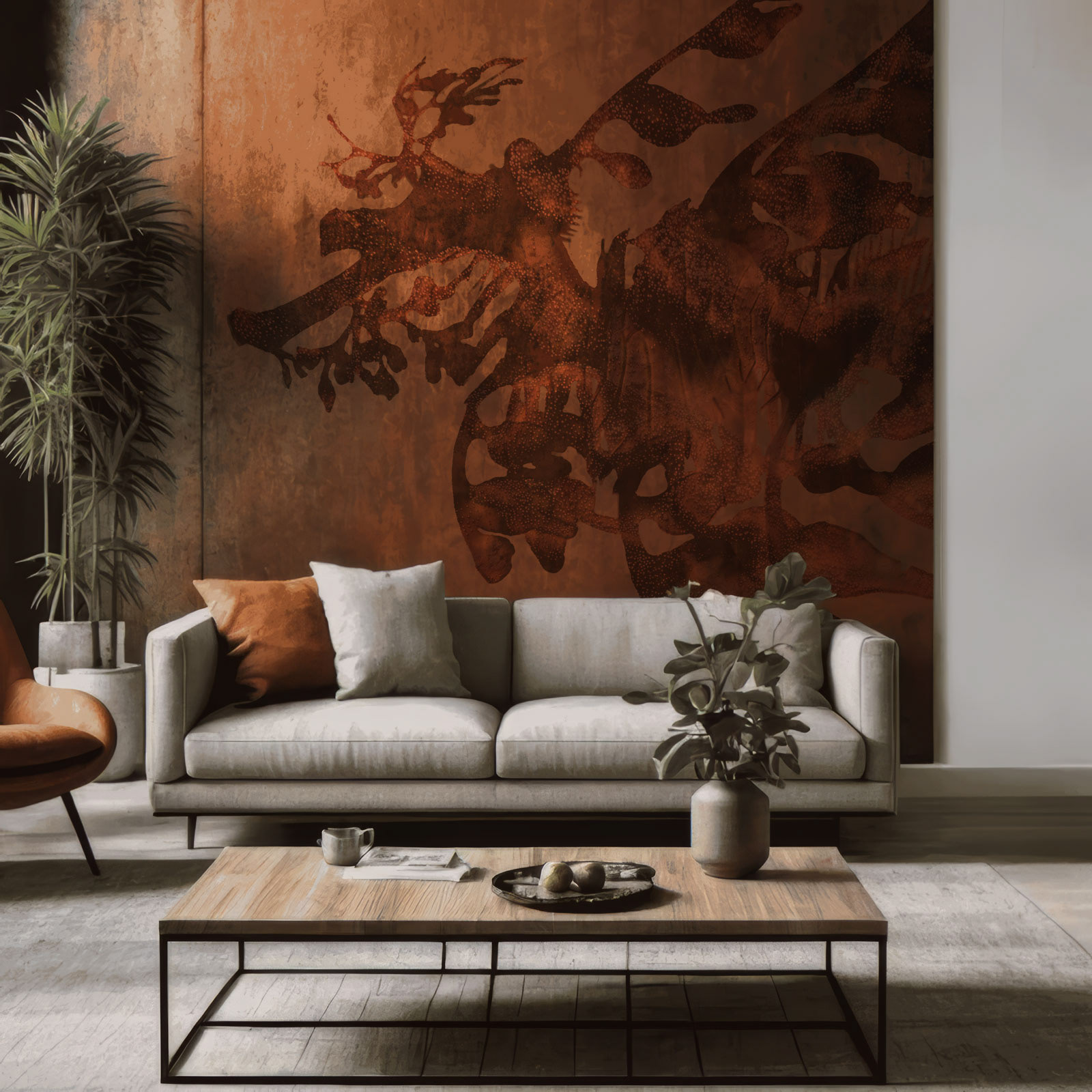 Infused with the warmth of metal and light, Ember Study captures the quiet radiance that lingers after creation — the shimmer of heat meeting the cool precision of industrial form. Within its burnished brass tones, the ethereal silhouette of a leafy sea dragon drifts through the surface like a creature born of smoke and flame. This interplay of nature and alchemy transforms the wall into a living artwork — a meditation on fragility, endurance, and beauty suspended in light.